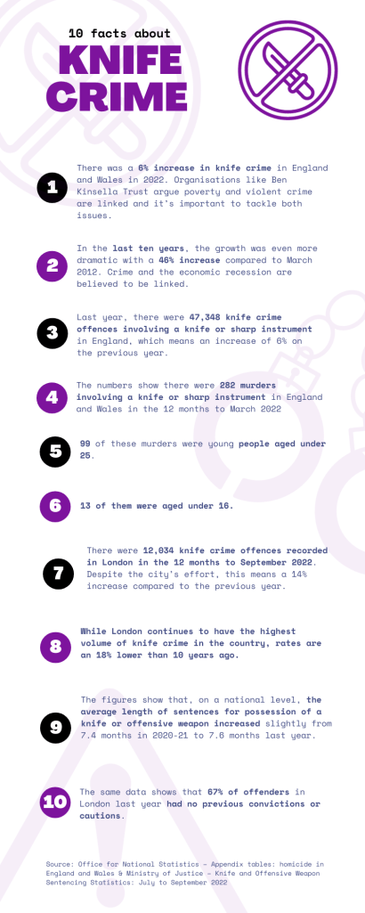 The largest volume increase was for teenage boys aged 16 to 17. Patrick Green, CEO of anti-knife crime charity the Ben Kinsella Trust – which was set up in 2008 following the fatal stabbing of 16-year-old Ben Kinsella in north London, mentioned the effects of the Covid-19 pandemic as a reason for knife crime rising faster amongst teenagers than any other group.