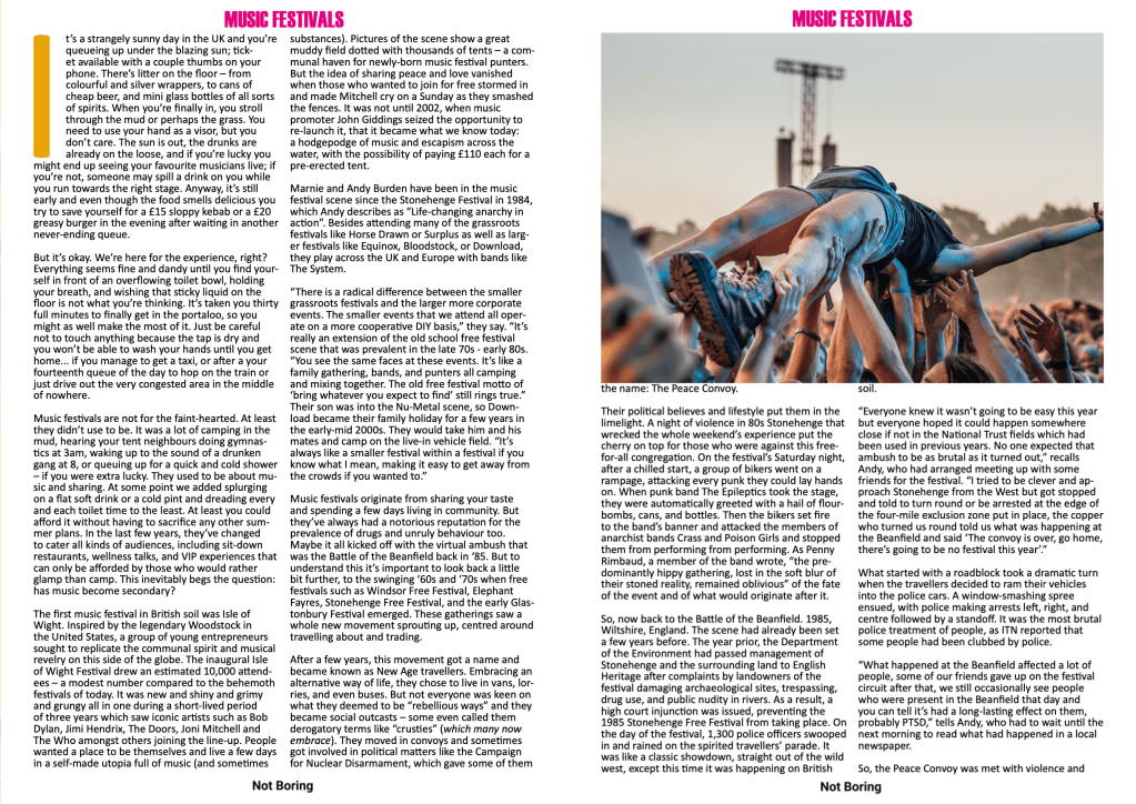 It’s a strangely sunny day in the UK and you’re queueing up under the blazing sun; ticket available with a couple thumbs on your phone. There’s litter on the floor – from colourful and silver wrappers, to cans of cheap beer, and mini glass bottles of all sorts of spirits. When you’re finally in, you stroll through the mud or perhaps the grass. You need to use your hand as a visor, but you don’t care.